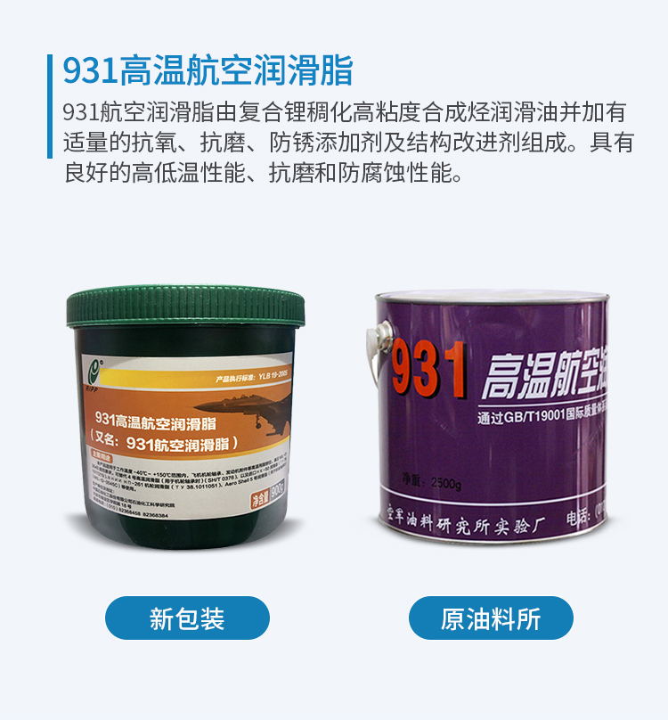 931高溫航空潤滑脂適用于高溫條件下的機輪軸承、發動機附件及其他高溫部位的潤滑和密封,使用溫度為-40℃~150℃。